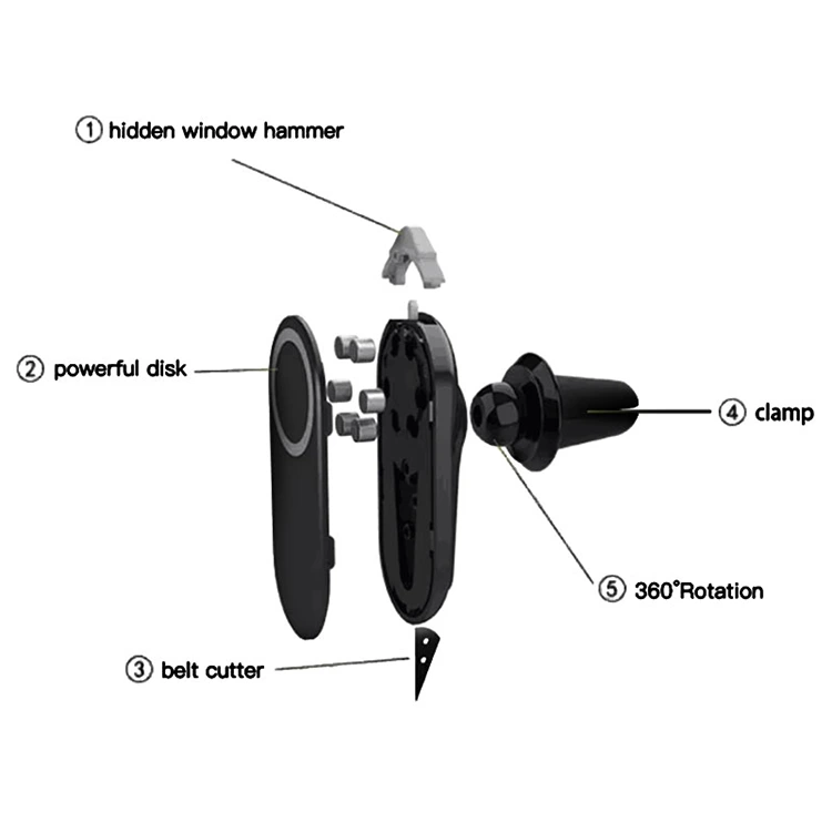3-i-1-designet forvandler dette tilbehør fra en simpel holder til et nødværktøj på få sekunder. Den skjulte vindueshammer er diskret, men alligevel effektiv, og den skarpe, rustfrie bælteskærer bruger en præcisionslegering til at skære gennem sikkerhedsseler med det samme i nødstilfælde.