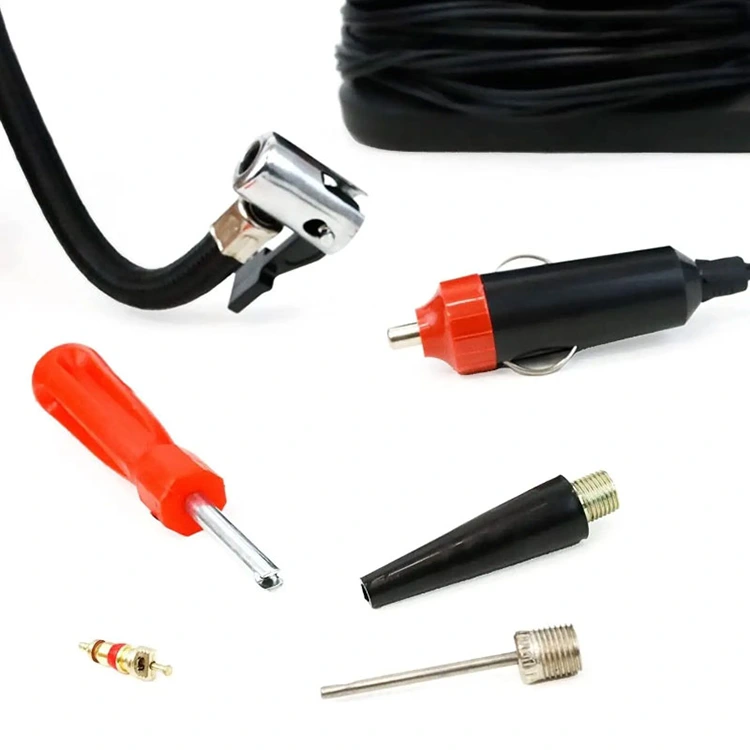 3. Tilslut kompressoren, strøm via 12 V stikkontakt, pust op til det anbefalede tryk, mens du aflæser metalmåleren.