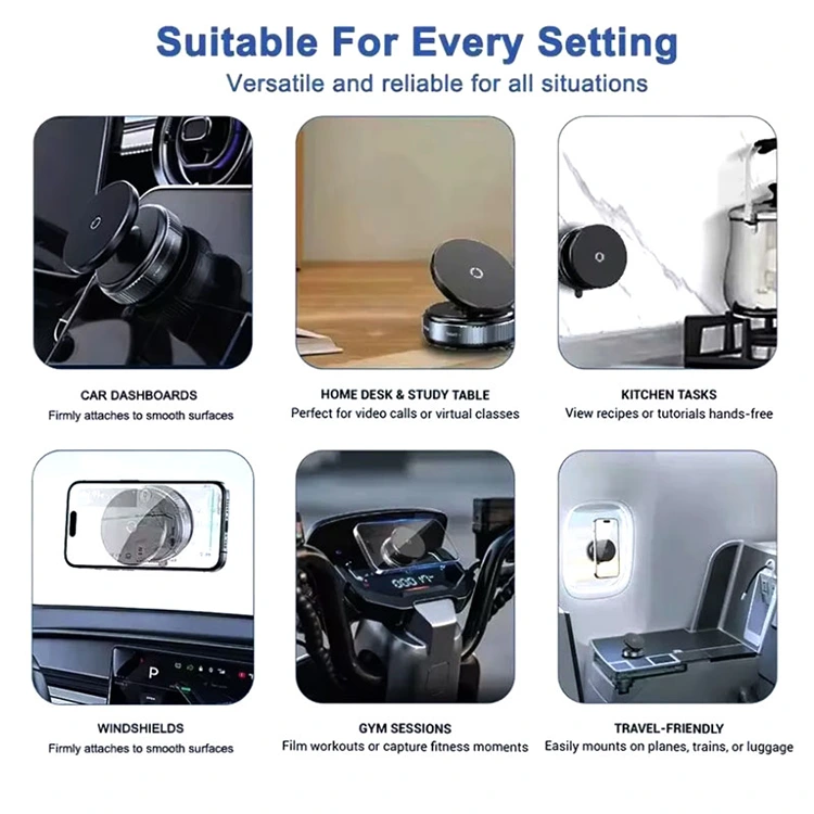 Magnetisk vakuum: Biltelefonholderen fastgøres til dit køretøjs glas, instrumentbræt eller glatte overflade med et hurtigt drej for et fast greb - der kræves ingen værktøj. Sæt ikke ringen på silikone, læder eller ujævne telefoncovers. Kør barske gader og skarpe sving uden bekymring, med din telefon sikkert fastspændt, og hold dine øjne frie til udelukkende at fokusere på vejen forude.