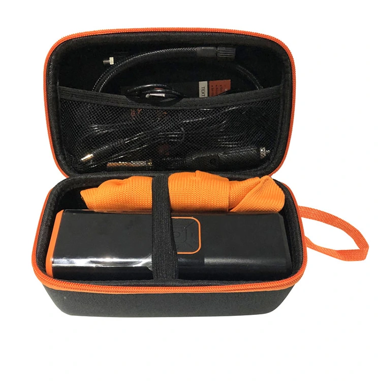 Komplet tilbehørssæt: Indeholder USB-opladningskabel, bilopladerkabel, luftdyser, handsker, digital dækmåler, bæretaske og en brugervejledning til hurtig opsætning.