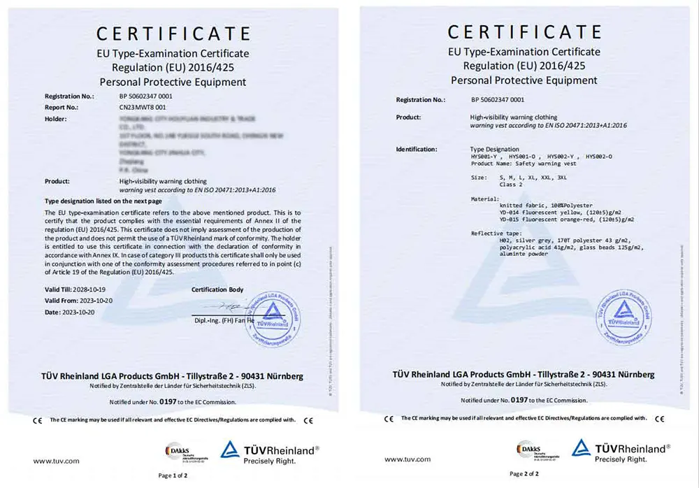 · Reflekterende tape med høj intensitet: Vores fabrik bruger førsteklasses retroreflekterende materialer, der sikrer 360° synlighed i svagt lys og om natten.